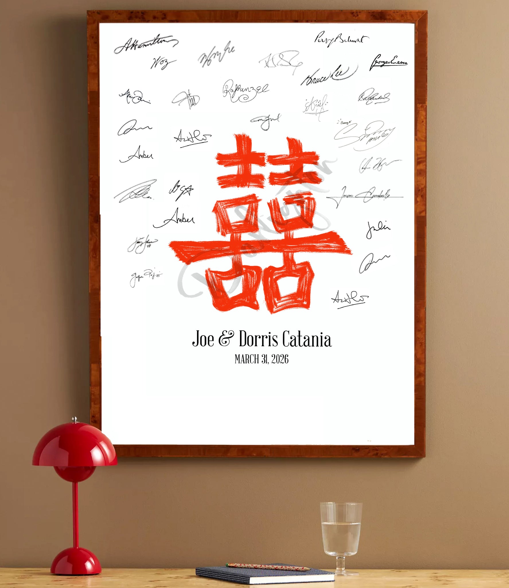 Double Happiness Red Chinese Symbol Guest Book Print, Guest Book, Bridal Shower, Wedding, Alternative Wedding Guestbook, Sign-in  (8 x 10 - 24 x 36) - Darlington Guestbooks