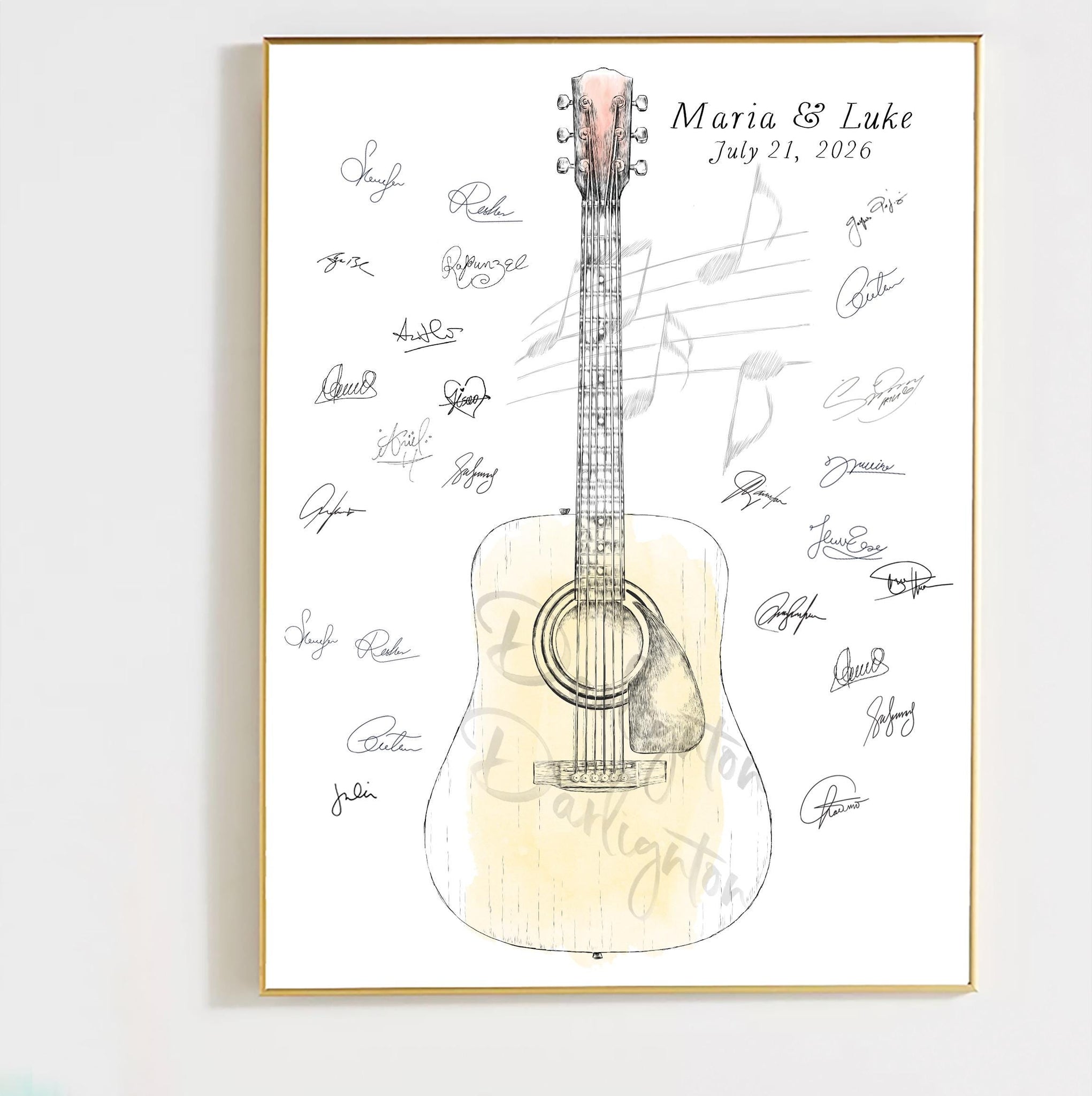 Our Guitar Birthday Guest Book print is professionally hand-drawn with care and precision so your guests can enjoy a lively, memorable and interactive fun time featuring the city of your choice. Your Guestbook will provide you signatures of your guests to commemorate your special day. And since our drawings are truly a piece of artwork, suitable for framing, you and viewers can appreciate your guestbook forever.
