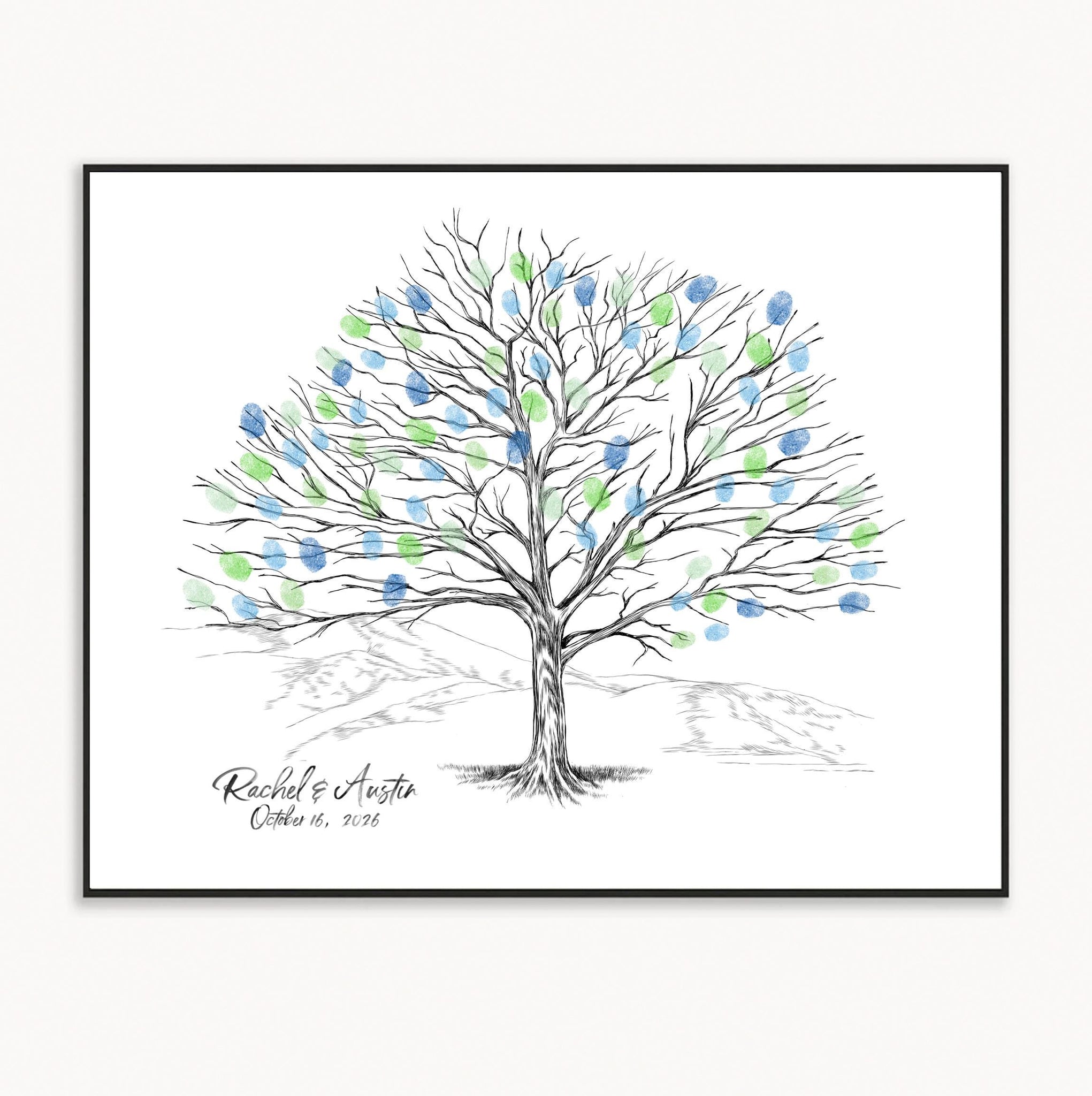 Our Elm Guestbook is professionally hand-drawn with care and precision so your guests can enjoy a lively, memorable and interactive fun time. Your fingerprint guestbook will provide you a record of your guests to commemorate your special day using their thumbprint or fingerprints to create leaves. And since our drawings are truly a piece of artwork, suitable for framing, you and viewers can appreciate your guestbook forever.