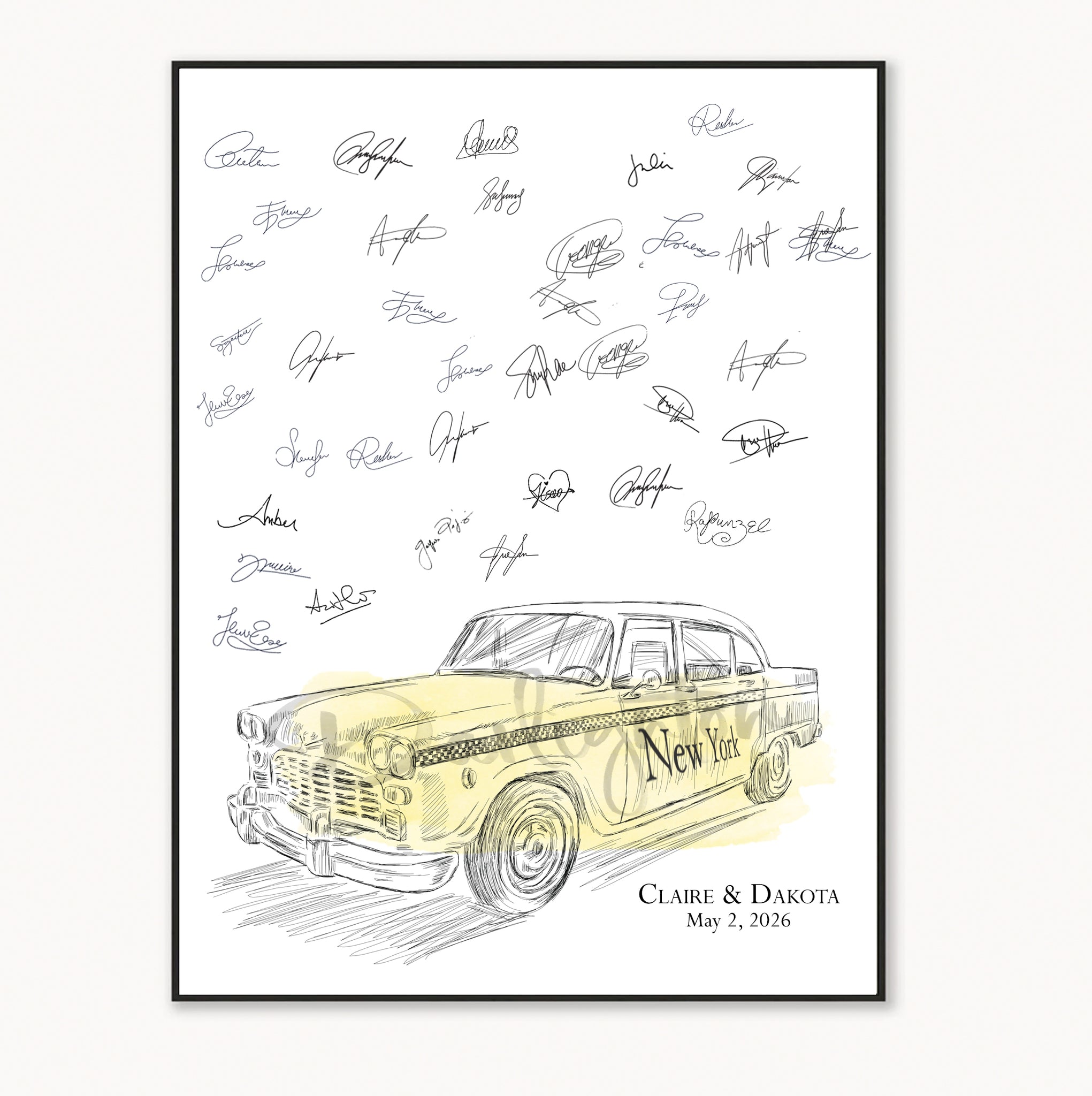 New York Taxi Guestbook Print, Guest Book, Bridal Shower, NYC Wedding, Custom, Alternative Guest Book, Sign-in, Birthday Party