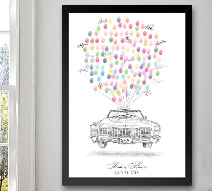 Our Vintage Cadillac Guestbook is professionally hand-drawn with care and precision so your guests can enjoy a lively, memorable and interactive fun time. Your fingerprint guestbook will provide you a record of your guests to commemorate your special day using their thumbprint or fingerprints to create leaves. And since our drawings are truly a piece of artwork, suitable for framing, you and viewers can appreciate your guestbook forever.