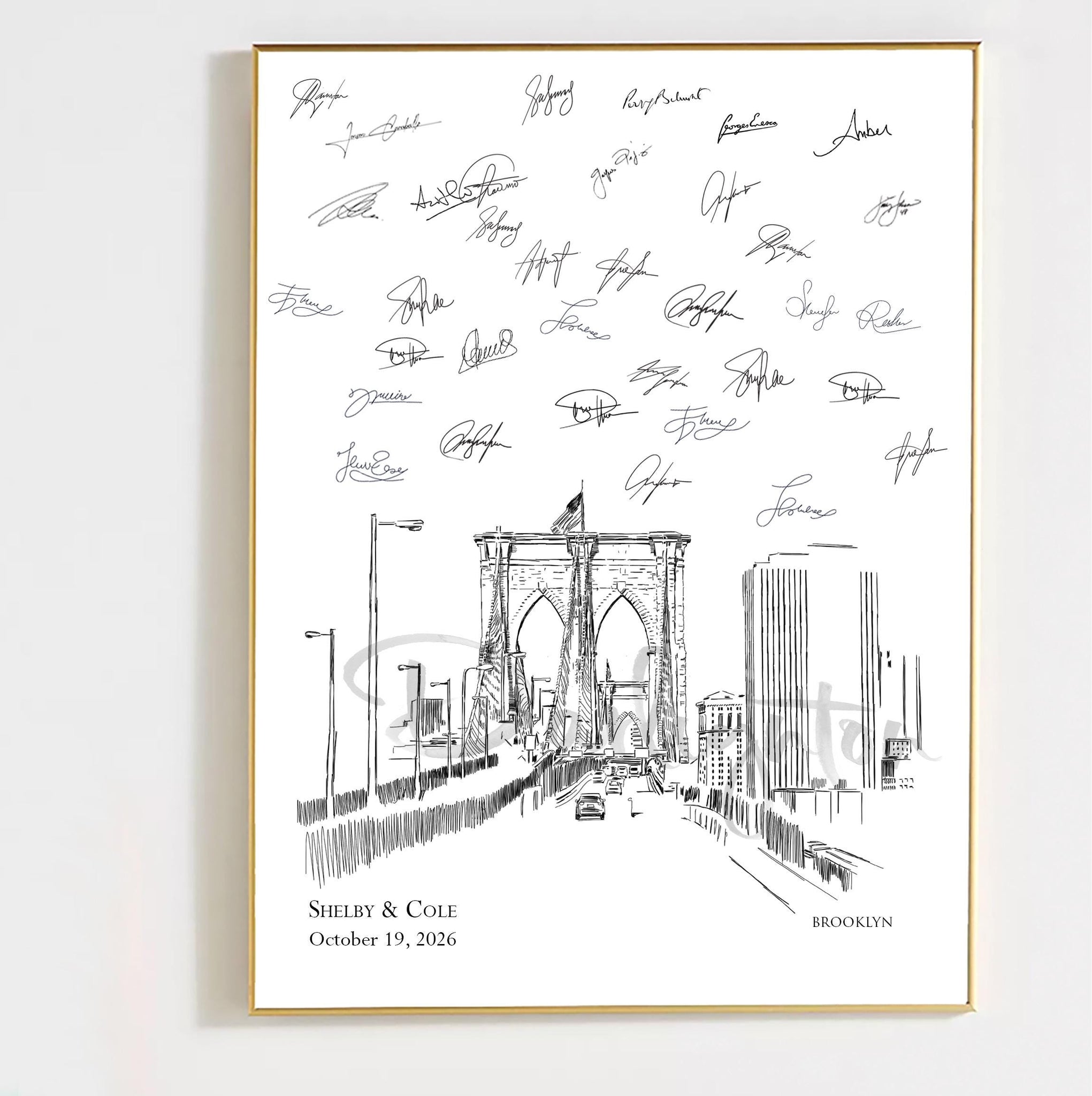Our Brooklyn Wedding Guestbook print is professionally hand-drawn with care and precision so your guests can enjoy a lively, memorable and interactive fun time featuring the city of your choice. Your Guestbook will provide you signatures of your guests to commemorate your special day. And since our drawings are truly a piece of artwork, suitable for framing, you and viewers can appreciate your guestbook forever. Don't see your city? Just send convo us, and we probably have it ; )