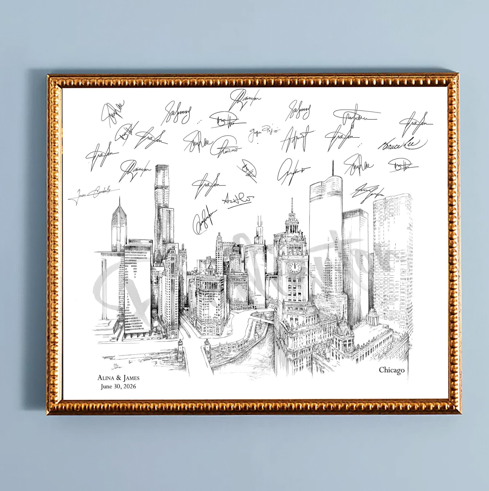 Chicago Wedding Guest Book Alternative: Skyline Signature Print