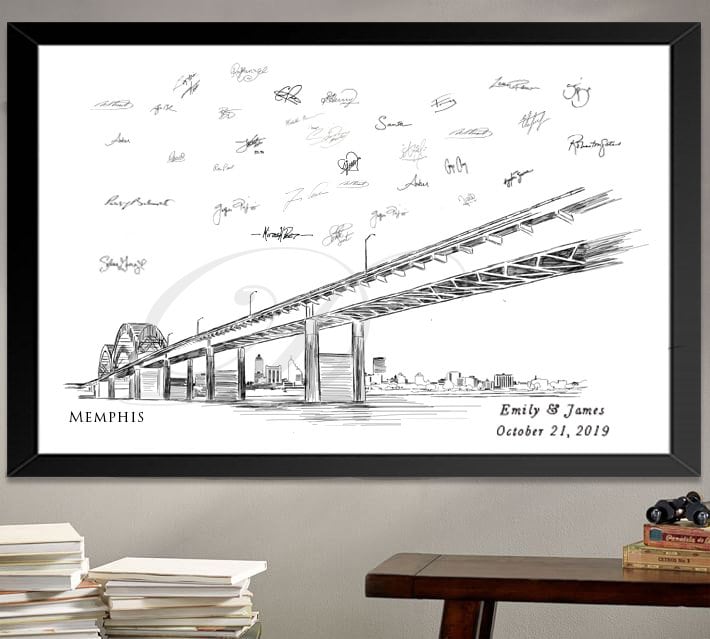 Memphis Bridge Wedding Guest Book Alternative: Custom Skyline Print