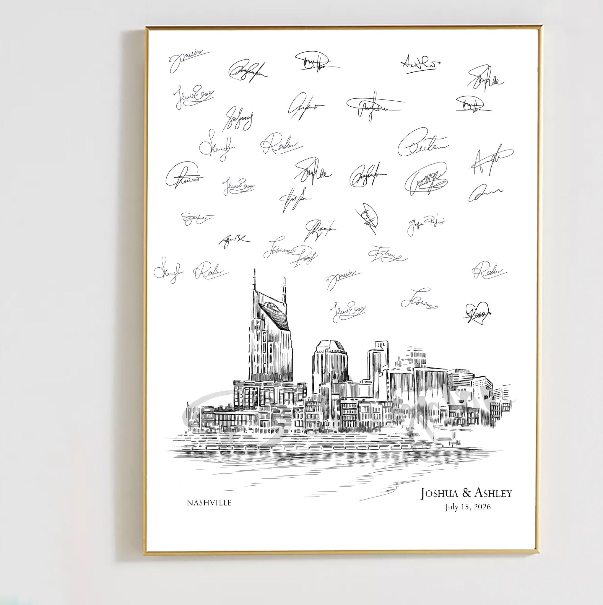 Nashville Skyline Wedding Guest Book Alternative: Personalized Water View Print