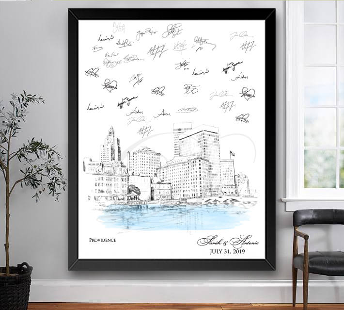 Providence, Rhode Island Skyline Guestbook Print, Guest Book, Bridal Shower, Wedding, Custom, Alternative Guest Book (8 x 10 - 24 x 36)