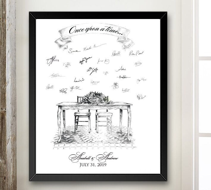Our Rustic Wedding Table print is professionally hand-drawn with care and precision so your guests can enjoy a lively, memorable and interactive fun time. Have your guests provide you signatures of your guests to commemorate your special day. And since our drawings are truly a piece of artwork, suitable for framing, you and viewers can appreciate your guestbook forever.