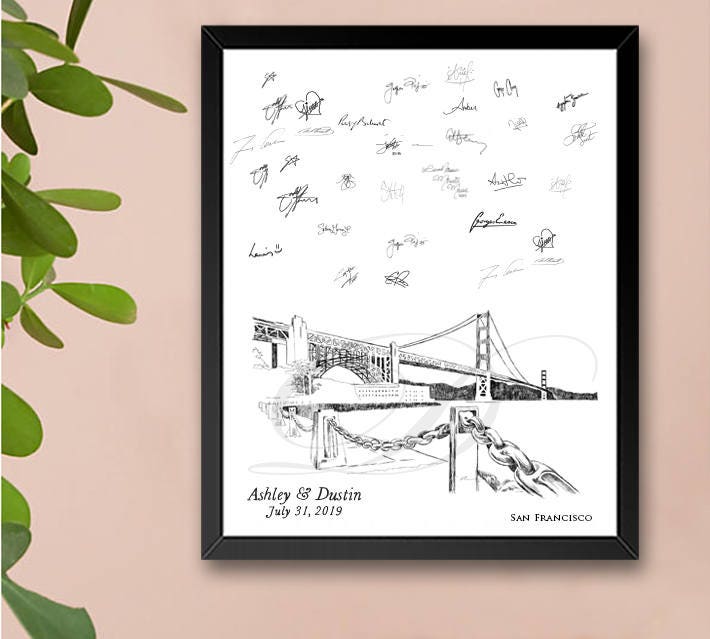 San Francisco Skyline Guestbook Print, Bridge, Guest Book, Bridal Shower, Wedding, Custom, Alternative, Baby Shower, Family Reunion FREE PEN