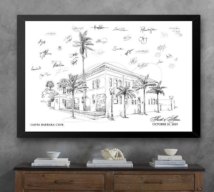 Our Santa Barbara Club Guestbook print is professionally hand-drawn with care and precision so your guests can enjoy a lively, memorable and interactive fun time featuring the city of your choice. Your Guestbook will provide you signatures of your guests to commemorate your special day. And since our drawings are truly a piece of artwork, suitable for framing, you and viewers can appreciate your guestbook forever. Don't see your city? Just send convo us, and we probably have it ; )