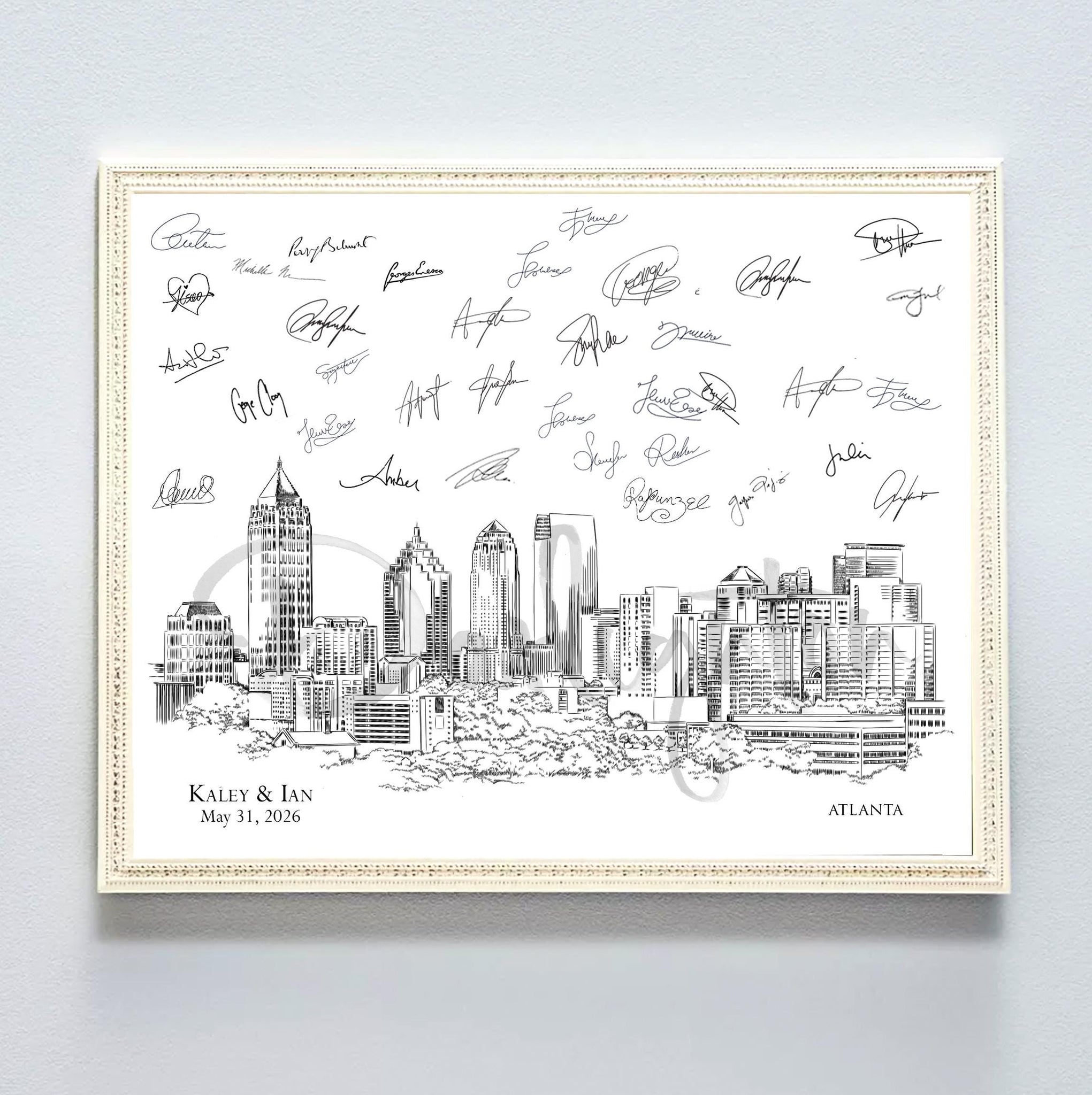 Our Atlanta Skyline Guestbook print is professionally hand-drawn with care and precision so your guests can enjoy a lively, memorable and interactive fun time featuring the city of your choice. Your Guestbook will provide you signatures of your guests to commemorate your special day. And since our drawings are truly a piece of artwork, suitable for framing, you and viewers can appreciate your guestbook forever. Don't see your city? Just send convo us, and we probably have it ; )