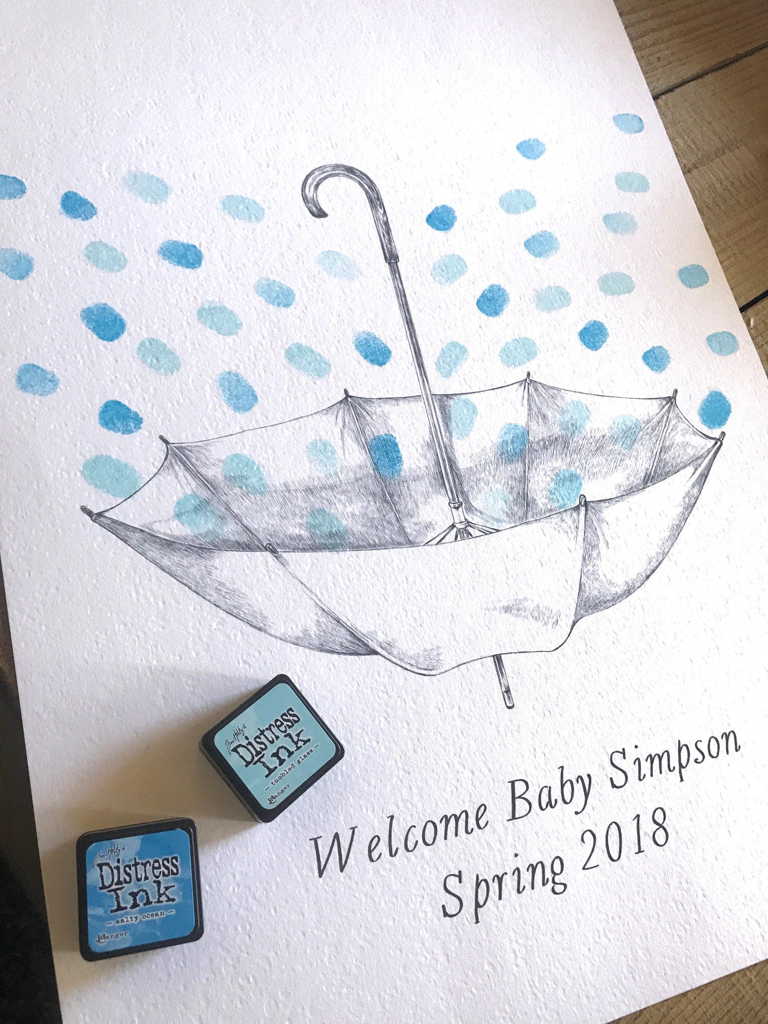 Baby Shower Guest Book Alternative Umbrella Thumbprint Fingerprint Gender Reveal Guestbook Baby Naming Day Baby Shower Decor