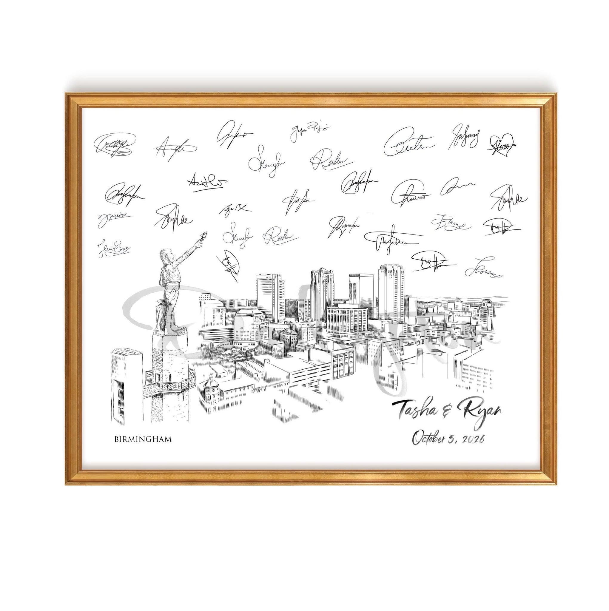 Birmingham Skyline Guestbook Print, Guest Book, Bridal Shower, Alabama Wedding, Custom, Alternative Guest Book, Sign-in (8 x 10 - 24 x 36)