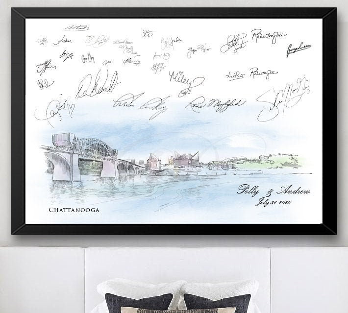 Our Chattanooga Watercolor Skyline Guestbook print is professionally hand-drawn with care and precision so your guests can enjoy a lively, memorable and interactive fun time featuring the city of your choice. Your Guestbook will provide you signatures of your guests to commemorate your special day. And since our drawings are truly a piece of artwork, suitable for framing, you and viewers can appreciate your guestbook forever. Don't see your city? Just send convo us, and we probably have it ; )