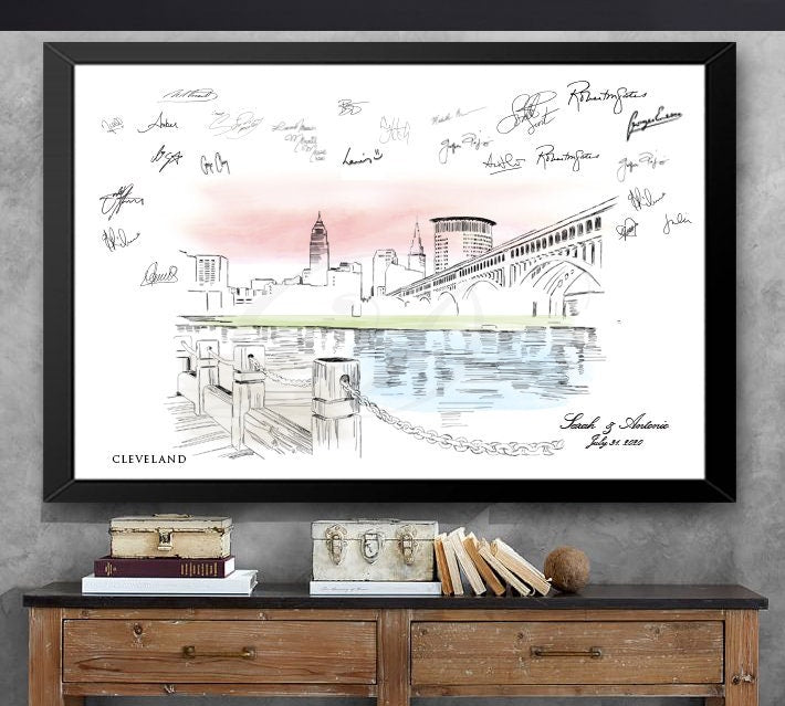 Our Cleveland Watercolor Skyline Guestbook print is professionally hand-drawn with care and precision so your guests can enjoy a lively, memorable and interactive fun time featuring the city of your choice. Your Guestbook will provide you signatures of your guests to commemorate your special day. And since our drawings are truly a piece of artwork, suitable for framing, you and viewers can appreciate your guestbook forever. Don't see your city? Just send convo us, and we probably have it ; )
