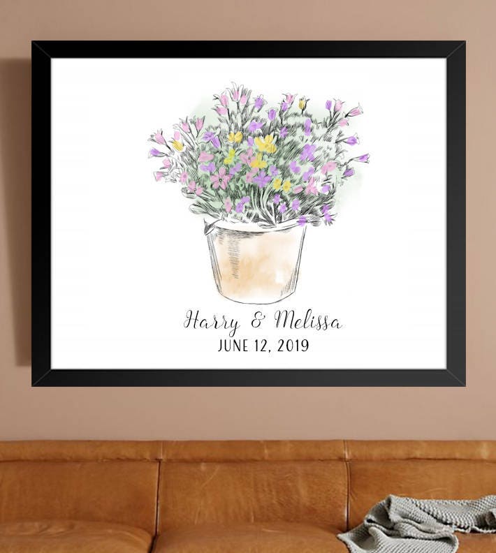 Wedding Guest Book Alternative Potted Pretty Flowers Thumbprint Print, Fingerprint Guestbook, Wedding, Bridal Shower, Baby Shower, Birthday